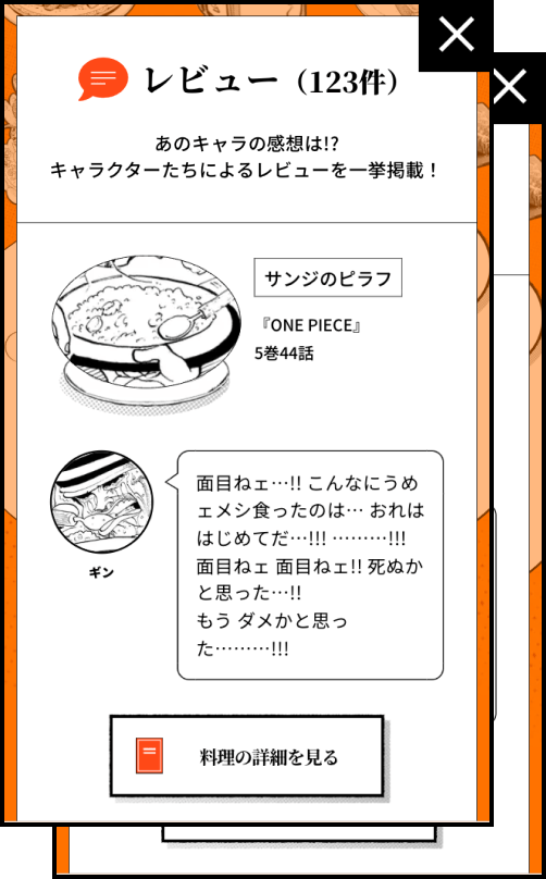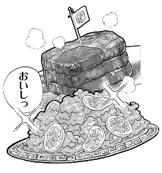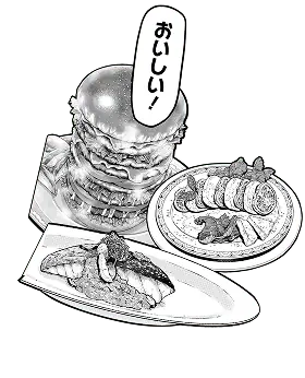 面目ねェ…!! こんなにうめェメシ食ったのは… おれははじめてだ…!!! ………!!! 面目ねェ 面目ねェ!! 死ぬかと思った…!!