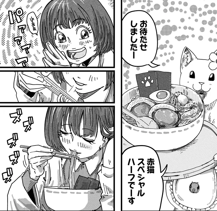 ラーメン赤猫作者名 : アンギャマン掲載誌 : 少年ジャンプ+コミックス1巻発売日 : 2022年10月04日配信巻数 : 12巻コミックス刊行状況 : 未完結最終更新日 : 2025年11月4日猫が営むラーメン屋に面接をしに来た珠子。店長からの質問に「犬派」と答えて、あっさりと採用されたのだが…、仕事内容は猫の世話係!? ラーメン赤猫、癒し大盛りで始まります!!試し読み 作者名 : アンギャマン掲載誌 : 少年ジャンプ+コミックス1巻発売日 : 2022年10月04日配信巻数 : 12巻コミックス刊行状況 : 未完結最終更新日 : 2025年11月4日猫が営むラーメン屋に面接をしに来た珠子。店長からの質問に「犬派」と答えて、あっさりと採用されたのだが…、仕事内容は猫の世話係!? ラーメン赤猫、癒し大盛りで始まります!!壁紙ダウンロード